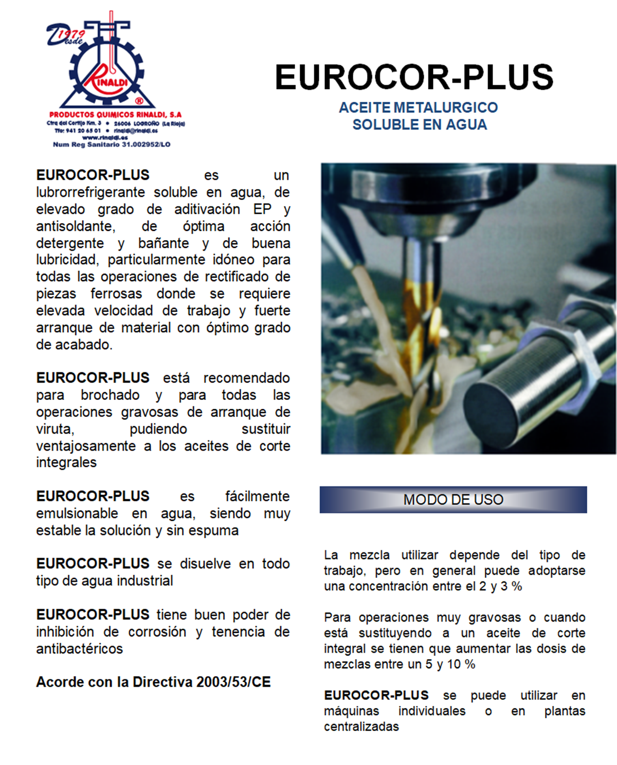 EUROCOR-PLUS - PRODUCTOS QUIMICOS RINALDI, S.A.
