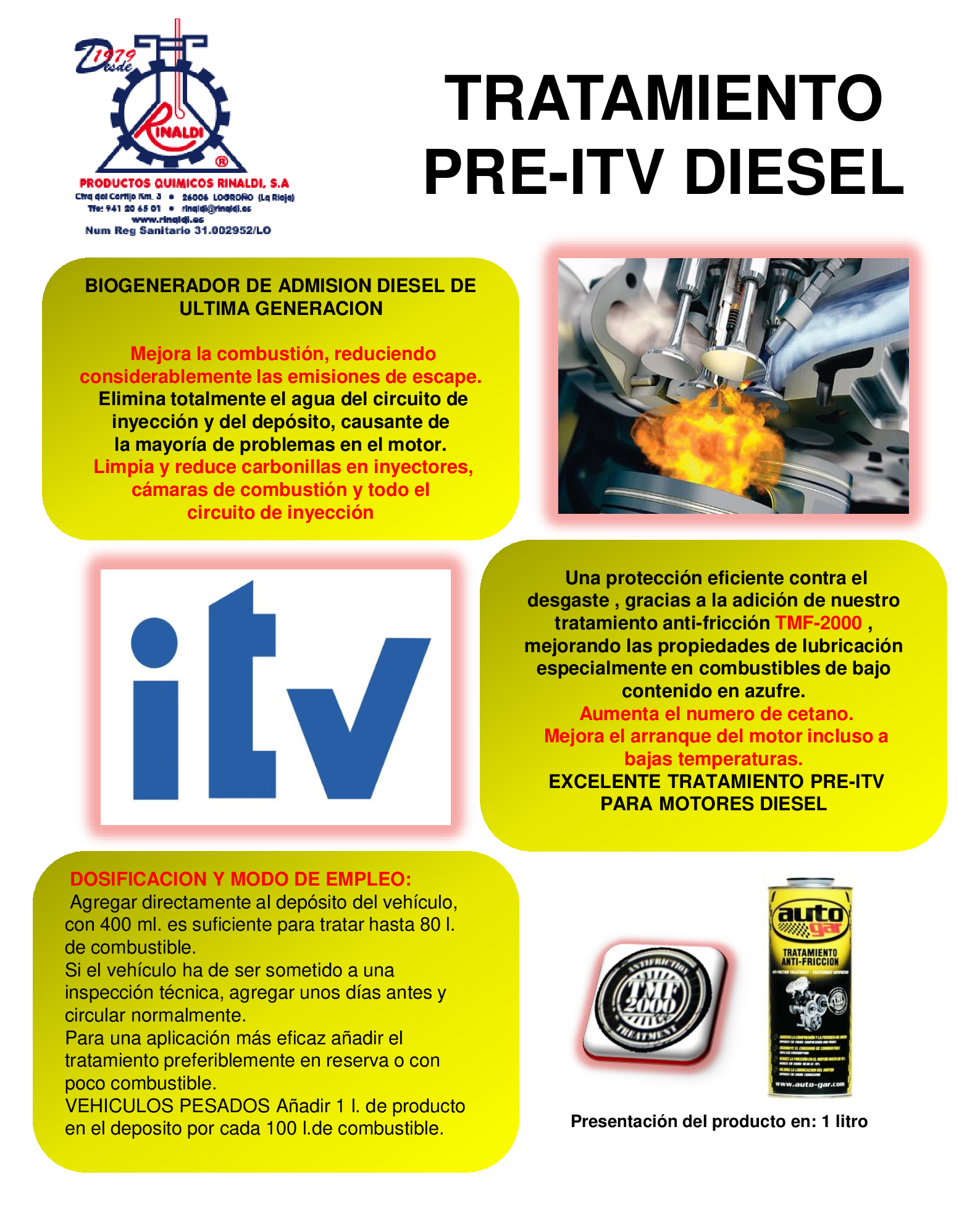 TRATAMIENTO PRE-ITV DIESEL - PRODUCTOS QUIMICOS RINALDI, S.A.