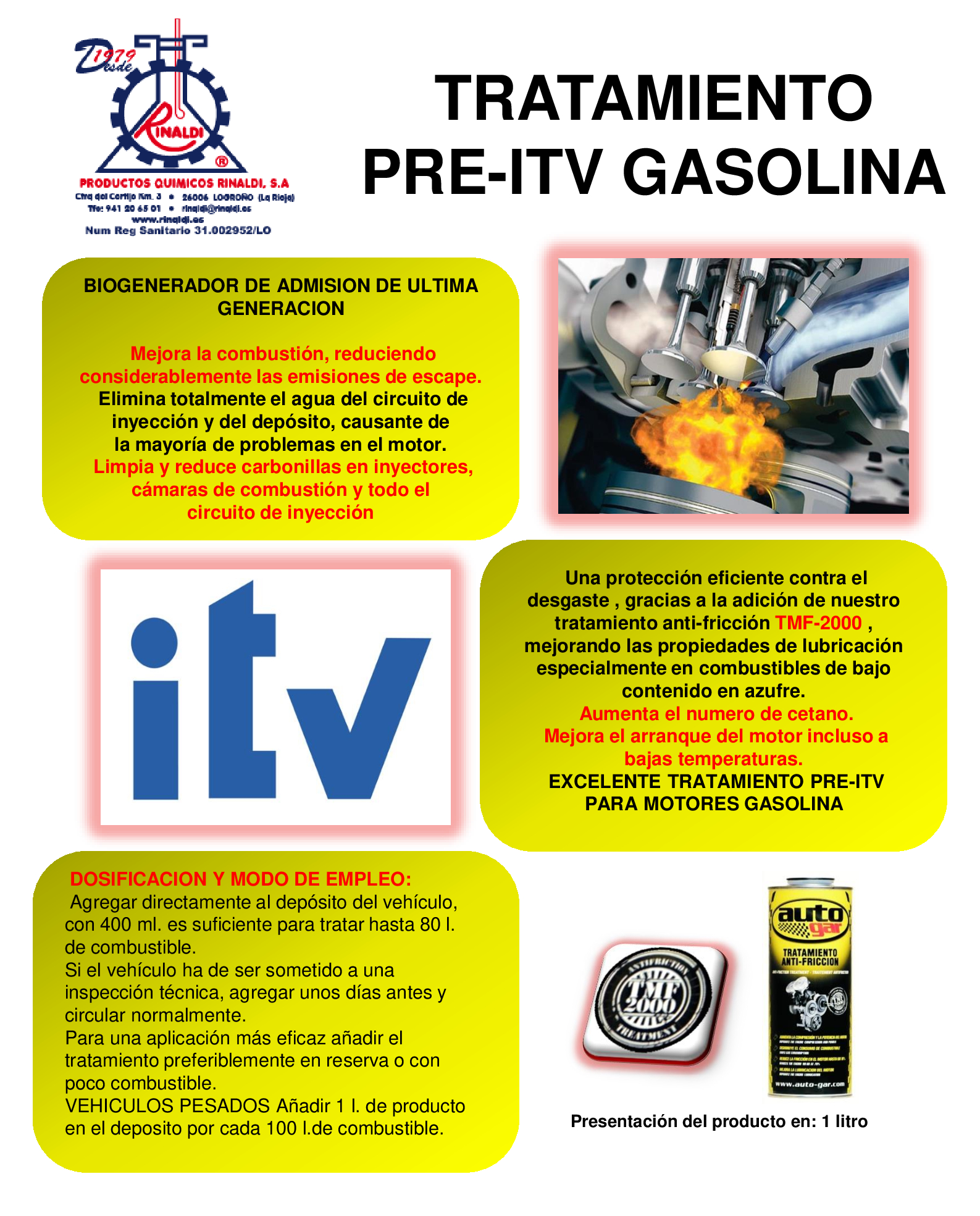 TRATAMIENTO PRE-ITV GASOLINA - PRODUCTOS QUIMICOS RINALDI, S.A.